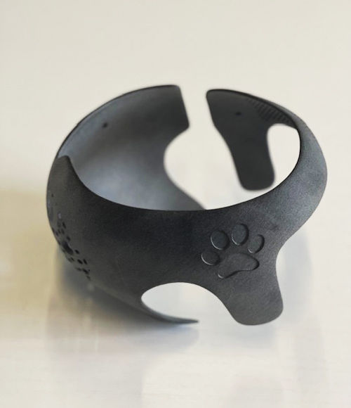 Ghiro va indossato 23/24 ore al giorno per un periodo variabile dai 2 ai 4 mesi. Il caschetto è realizzato in PA12 (polvere di poliammide bioplastica), materiale utilizzato dalla stampante 3D di tipo multijet fusion HP con il quale viene prodotta la scocca portante, in seguito imbottita e rivestita con materiali tecnici morbidi e confortevoli.