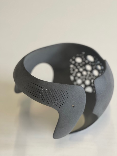 Costruito su misura con tecnologia cad cam, il rilievo delle misure viene effettuato in pochi secondi, senza contatto, utilizzando lo scanner M4D a luce strutturata (no laser), completamente innocuo e certificato per l'utilizzo sul corpo umano per digitalizzare la forma del cranio.